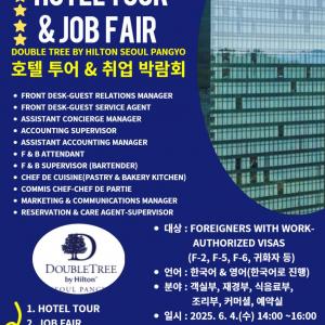 안녕, 여러분. 일자리를 찾고 계신가요? 호텔, 레스토랑에서 일할 자격과 경력이 있다면 5성급 호텔에서 일할 기회가 있습니다. ...
