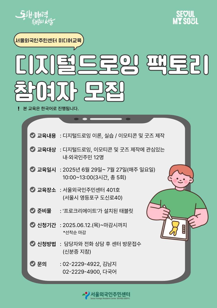 -교육대상 : 디지털드로잉, 이모티콘 및 굿즈 제작에 관심있는 내외국인주민 12명